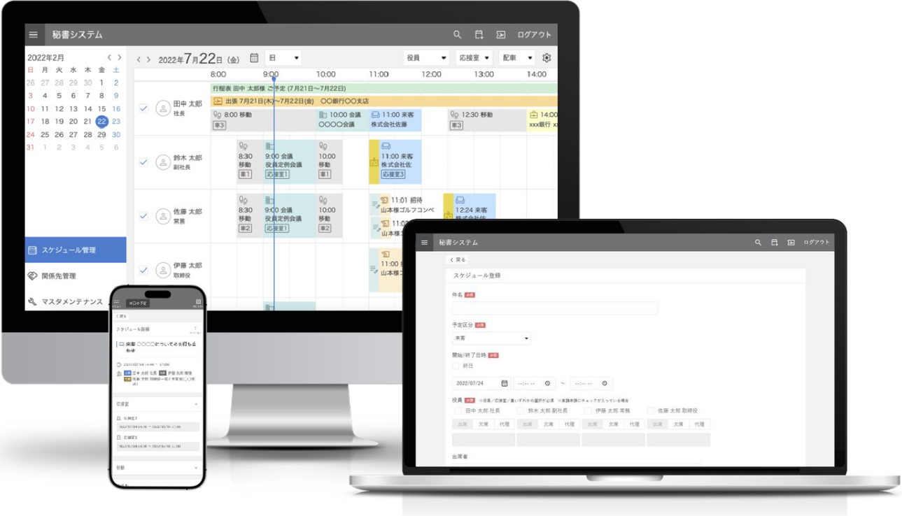 – Schedules can be set up quickly, and meeting rooms and transportation can be booked.